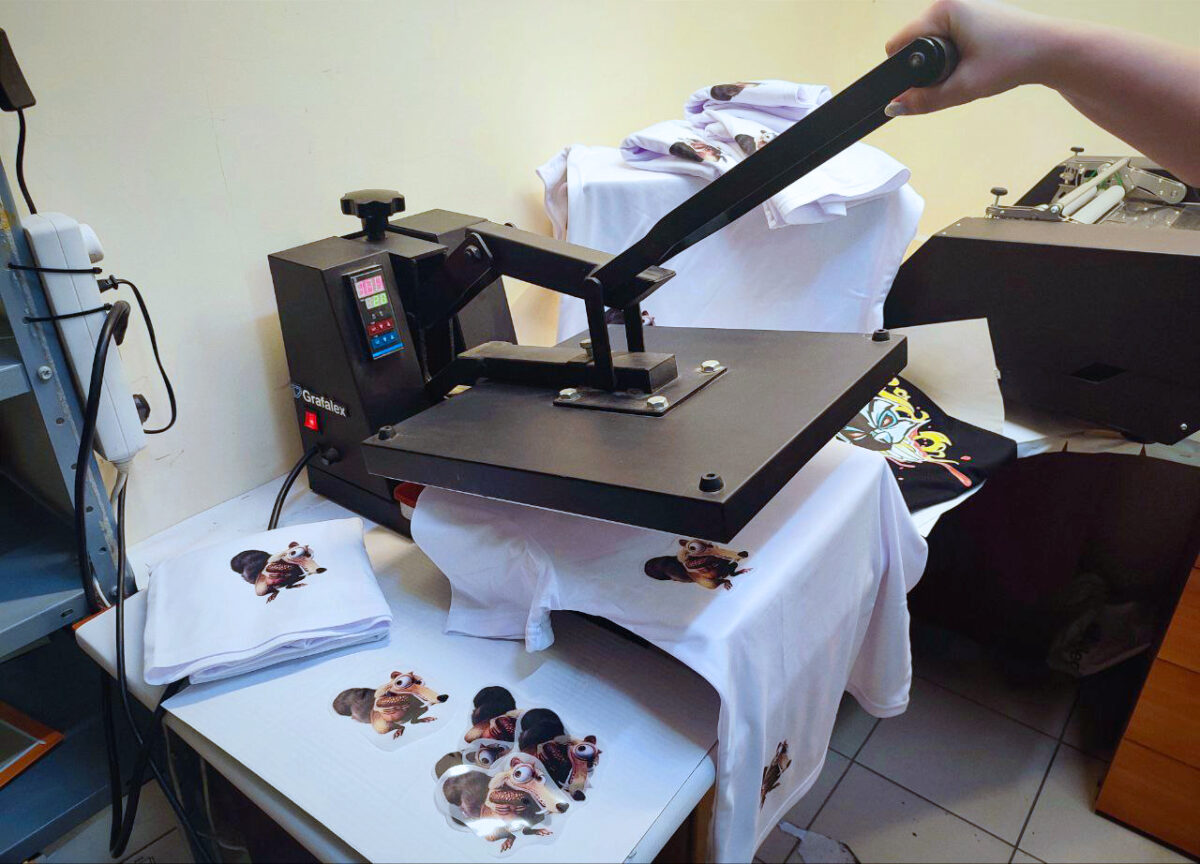 То, что получилось после запекания порошка, называют трансфером или термонаклейкой. Трансфер можно хранить сколько угодно, например, отправить рулон такого трансфера с напечатанными логотипами куда-то в другое место, где эти самые логотипы будут наносить на обычном термопрессе. А можно сразу пускать в работу — наносить изображение на ткань.