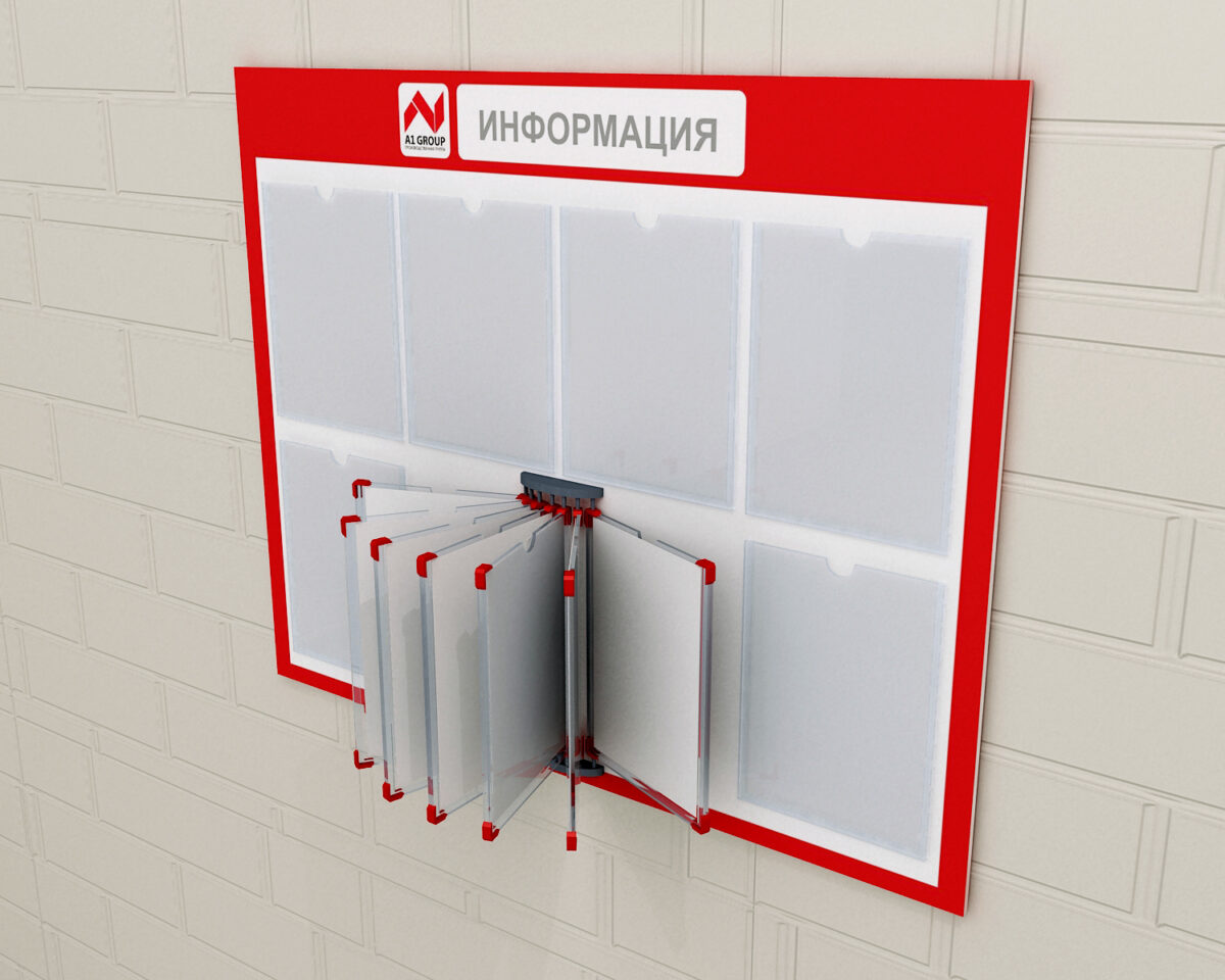 Еще проще выбрать то, что вам нужно в каталоге из представленных вариантов и заказать изготовление стенда онлайн. Во время заказа вы сможете выбрать размеры стенда и количество карманов, заказать нужное вам количество перекидных карманов (такие варианты очень удобны для стендов с большим количеством информации: образцы заполнения заявлений, бланков и т.д.), выбрать материал защитного профиля, выбрать стандартное или указать своё название стенда.