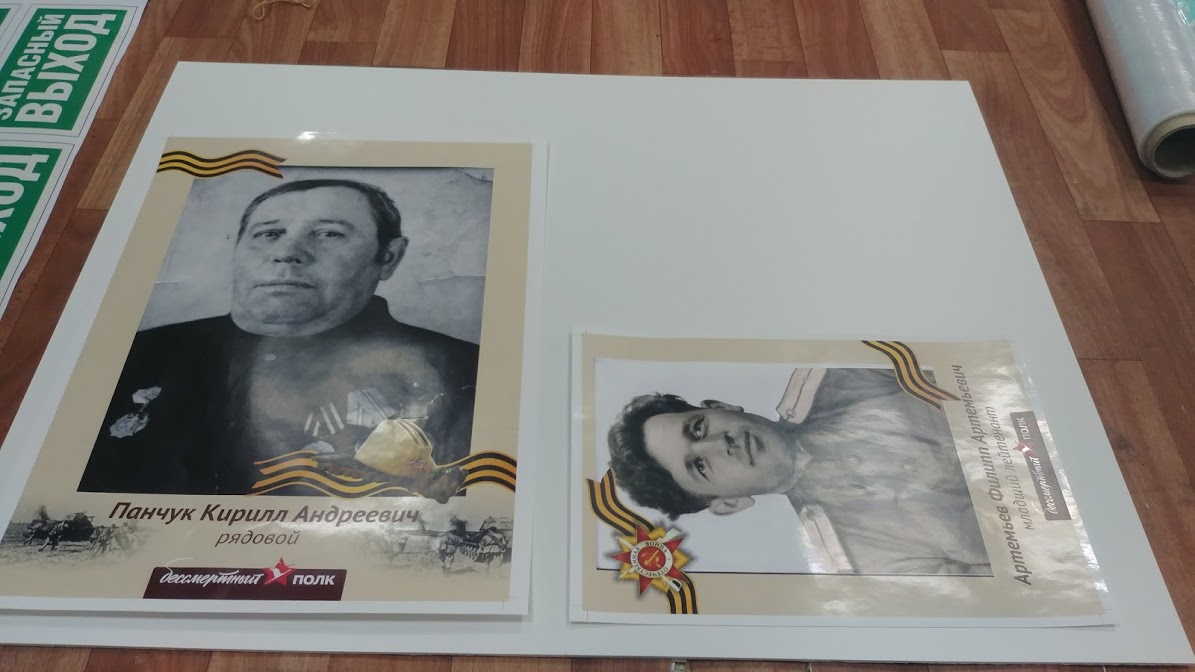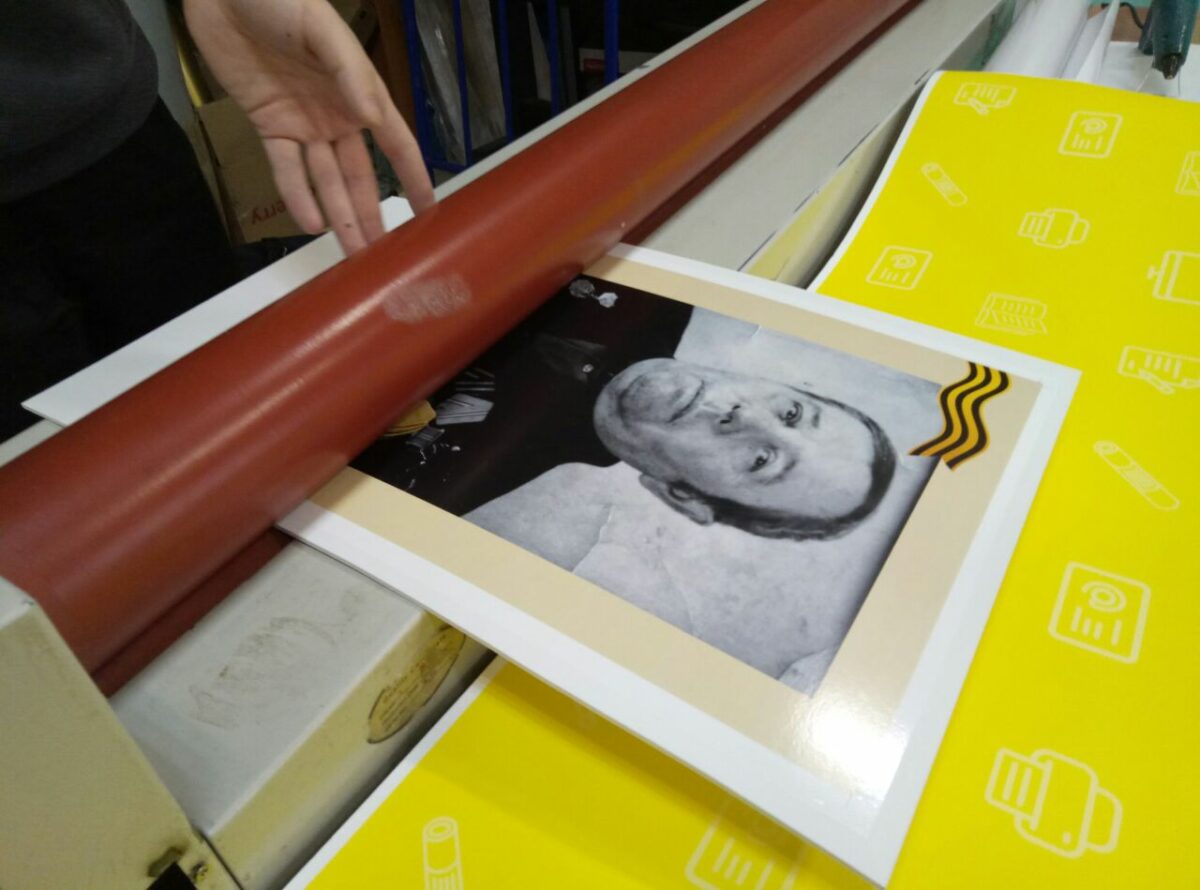 Раньше люди просто брали более-менее приличные фотографии ветеранов, приклеивали их к самодельным фанерным плакатам или вставляли в рамки и несли в руках. Сейчас проще заказать готовые красивые штендеры и транспаранты. На официальном сайте Бессмертного полка есть целый список контор, которые это делают. И наша типография «Процвет», как официальный партнёр, там тоже есть.