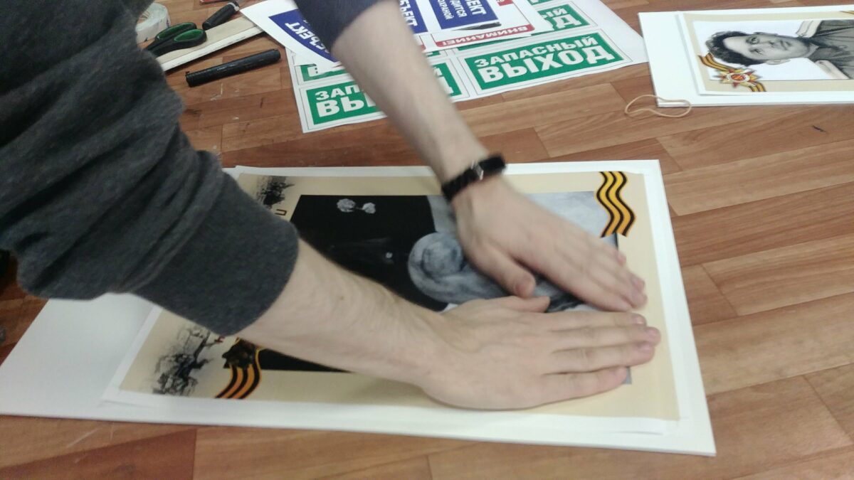 Второй этап — наклейка плакатов и фото на штендер. Тут всё просто, особенно если делать это будут наши профессиональные работники.
