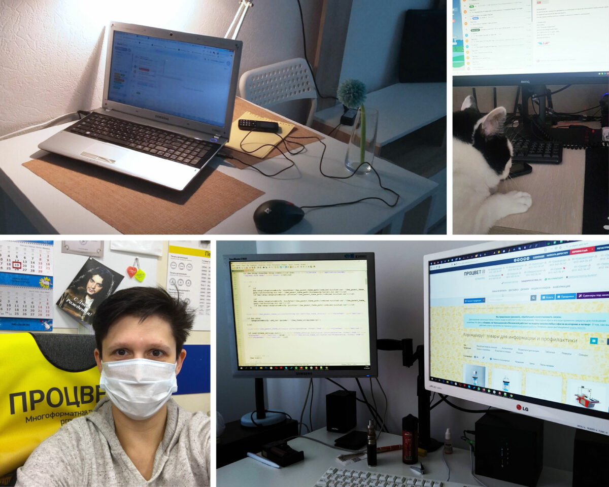 Некоторые коллеги перехода на удаленную работу вообще не почувствовали, потому что и так работали удаленно. Например, наш программист и сайтостроитель М. и копирайтер А.В. Многим в работе теперь помогают домашние питомцы: кошки, собаки, рыбки…