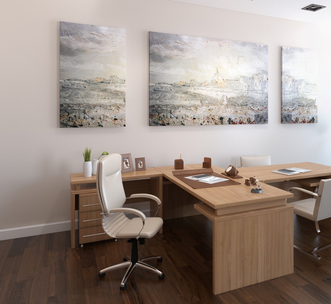 Точно так же, как и в кабинете руководителя, в офисных пространствах и кабинетах будут уместны и модульные картины. Подбирать их следует в тон мебели, которая установлена в рабочем пространстве. Помните, что задача картины — не отвлекать сотрудника от работы, а наоборот, помогать ему чувствовать себя уютно и комфортно во время работы.