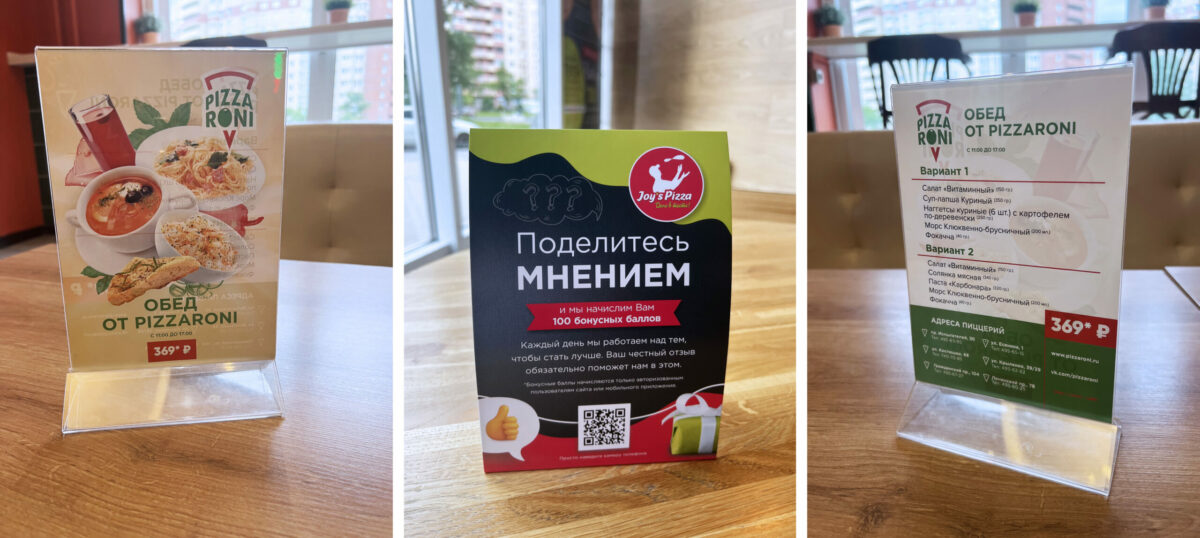 Тейбл-тенты, менюхолдеры и летние листовки с акциями