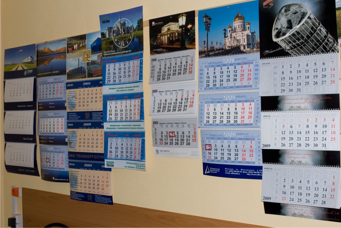— Пользуюсь, в основном, квартальным календарём с «окошечком». Очень удобно не потеряться в днях недели и вовремя делать нужные отчёты. Кроме того, он украшает мой кабинет и не занимает места на моём столе, где и так много всяких бумаг.