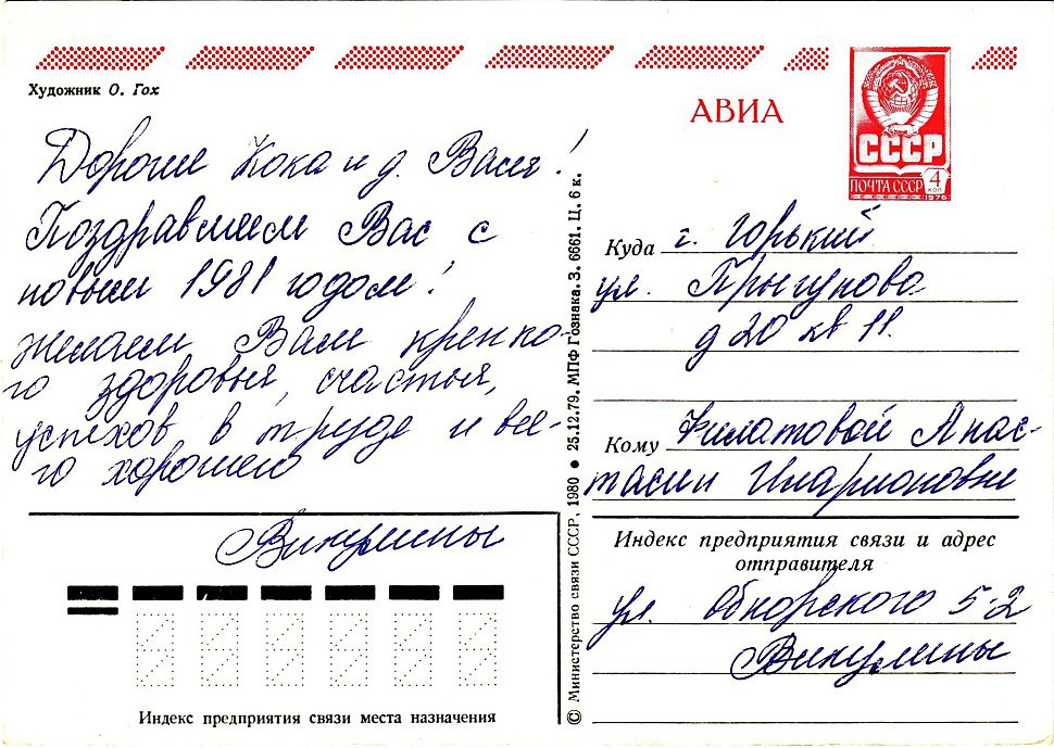 Подписывание праздничных поздравительных открыток тоже было целым ритуалом, в котором принимала участие вся семья. Тексты поздравлений сначала писались на бумажке, в черновике. Потом тот, у кого был самый красивый почерк — мама или сестра-отличница, аккуратно переносили поздравления на оборотные стороны почтовых карточек.