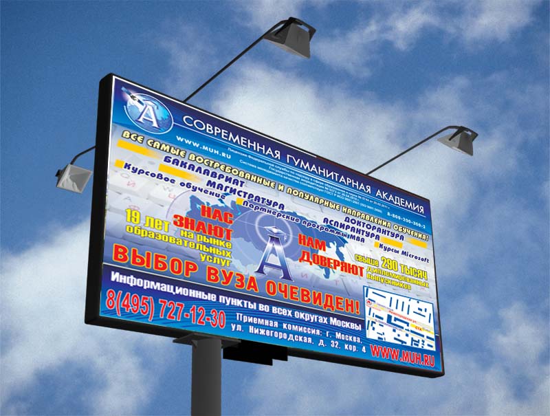 - Не прибегаем к услугам посредников, а значит, можем себе позволить достаточно низкие цены на печать биллбордов.