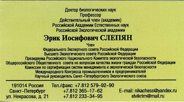 - визитку действительного почётного члена общества любителей буквы «Ё» Ивана Семёновича Петрова.