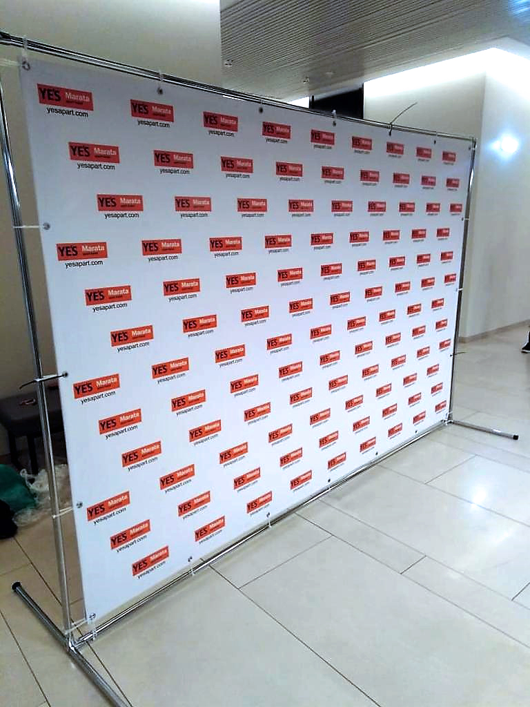Это конструкция, без которой сегодня не обходится ни одно мало-мальски уважающее себя мероприятие. Представляет собой большую раму, которая легко собирается из тонких алюминиевых или стальных хромированных труб, и так же легко разбирается. На раму натягивается баннерное полотно с изображением. Края баннера по периметру оснащаются люверсами, а крепится он к раме стяжками или специальным шнуром для крепления. На баннере обычно печатаются логотипы организаторов мероприятия или торговые знаки (марки).