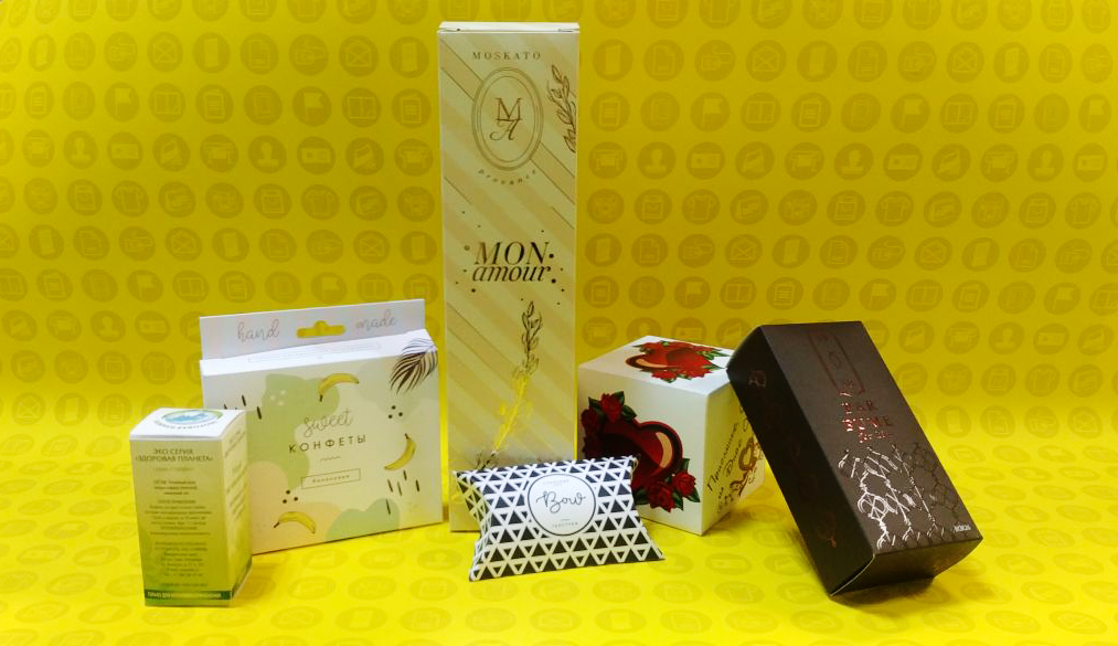 Текст и изображение на коробки наносятся самыми разными способами: цифровой печатью, шелкографией, тиснением и фольгированием. Возможно и комбинированное нанесение, например, печать и тиснение. В общем, есть простор для дизайнерской фантазии.