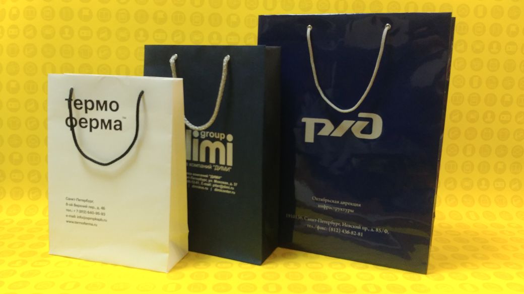 Фирменный пакет — это всегда оригинальный дизайн. Ваш пакет точно не затеряется среди других пакетов с котятами или цветочками. К каждому празднику можно разработать свой собственный дизайн и поздравления, которые будут нанесены на пакет.