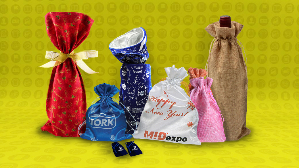 Самое приятное в этом типе упаковки — выбор тканей для мешочков просто огромен. Атлас, сатен, мокрый шелк — все эти материалы будут выглядеть дорого и солидно. Плюс ко всему, на ткань для мешочков можно нанести элементы корпоративного стиля компании. И это будет выглядеть очень круто. Печать на мешочках для подарков осуществляется разными способами — от прямой печати, до шелкографии и термопереноса.