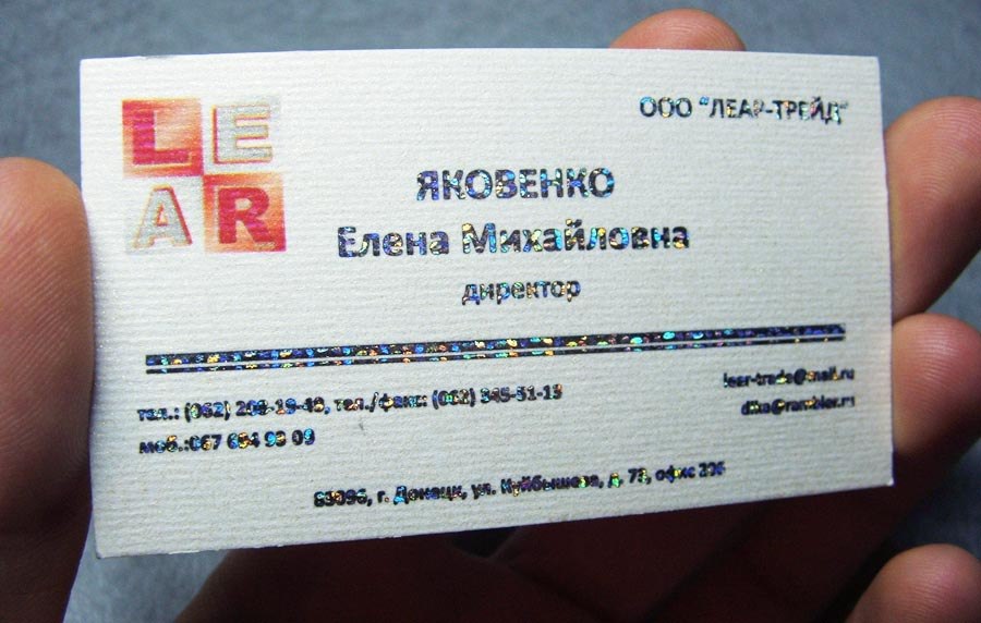 Печатать визитки на простой матовой белой бумаге — это тоже отстой. Так делают исключительно люди без фантазии и чувства прекрасного. Те, кто хочет что-то оригинальное, и бумагу выбирают соответствующую. Лучше всего выбрать бумагу с каким-нибудь рельефом. Конечно, чернила или тонер печатной машины будет слегка растекаться по таким впадинам и выпуклостям, и вряд ли кому-то что-то удастся потом прочитать, но зато от бумаги все будут в восторге. Дорогую дизайнерскую бумагу стоит непременно заламинировать, чтобы сохранить ее эксклюзивность и оригинальность.