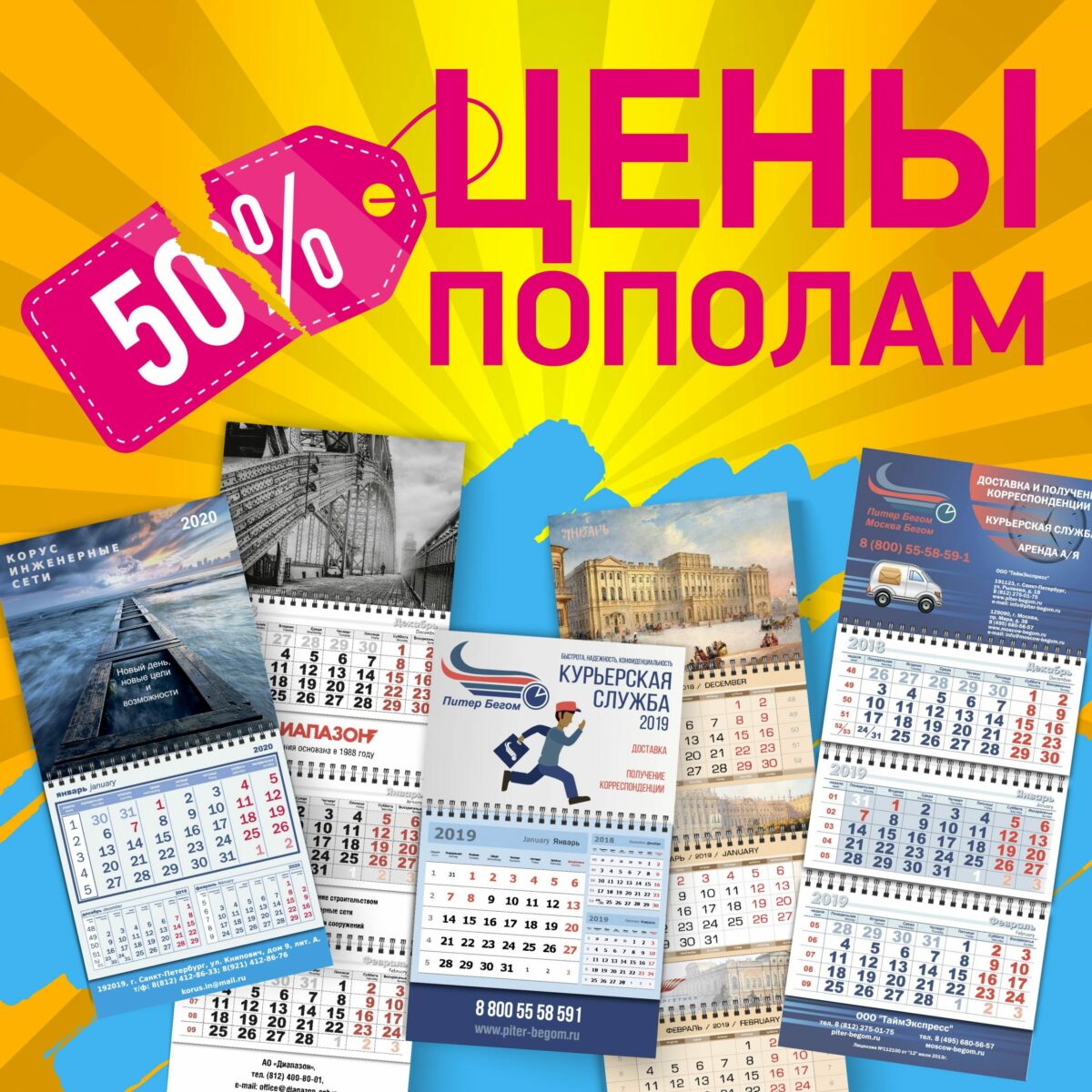 Конечно же, эта скидка не на все товары, а только на несколько видов календарей на 2020 год. Если вы не успели что-то заказать перед новогодними праздниками, или вам потребовался дополнительный тираж календарей — эта акция то, что вам нужно.